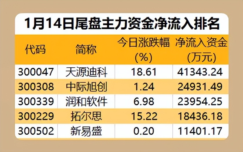 ▊5股尾盘获主力资金大手笔抢筹