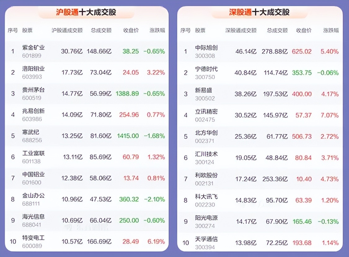 4、北向资金共成交3554.78亿元,占两市总成交额的12.23%——