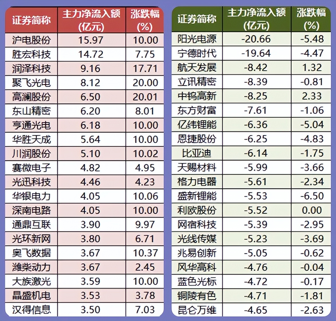 3、两市主力资金净流出300.45亿元——
