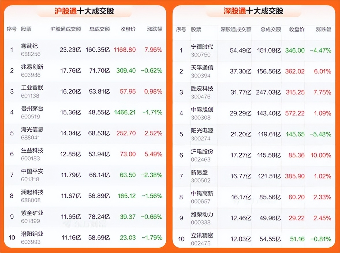 4、北向资金共成交3168.50亿元,占两市总成交额的12.48%——