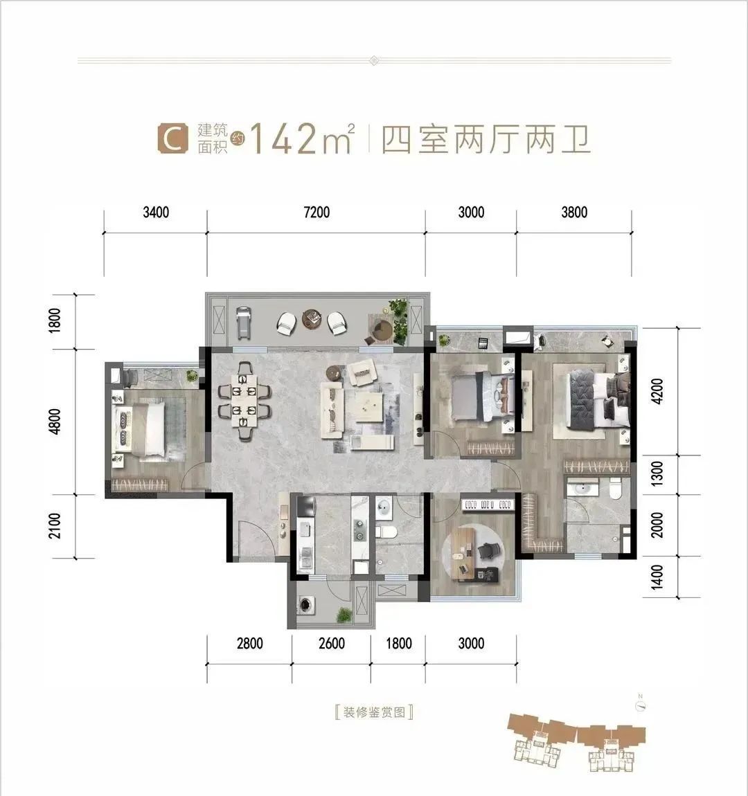 |朗基紫境东来107平米、142平米户型图
