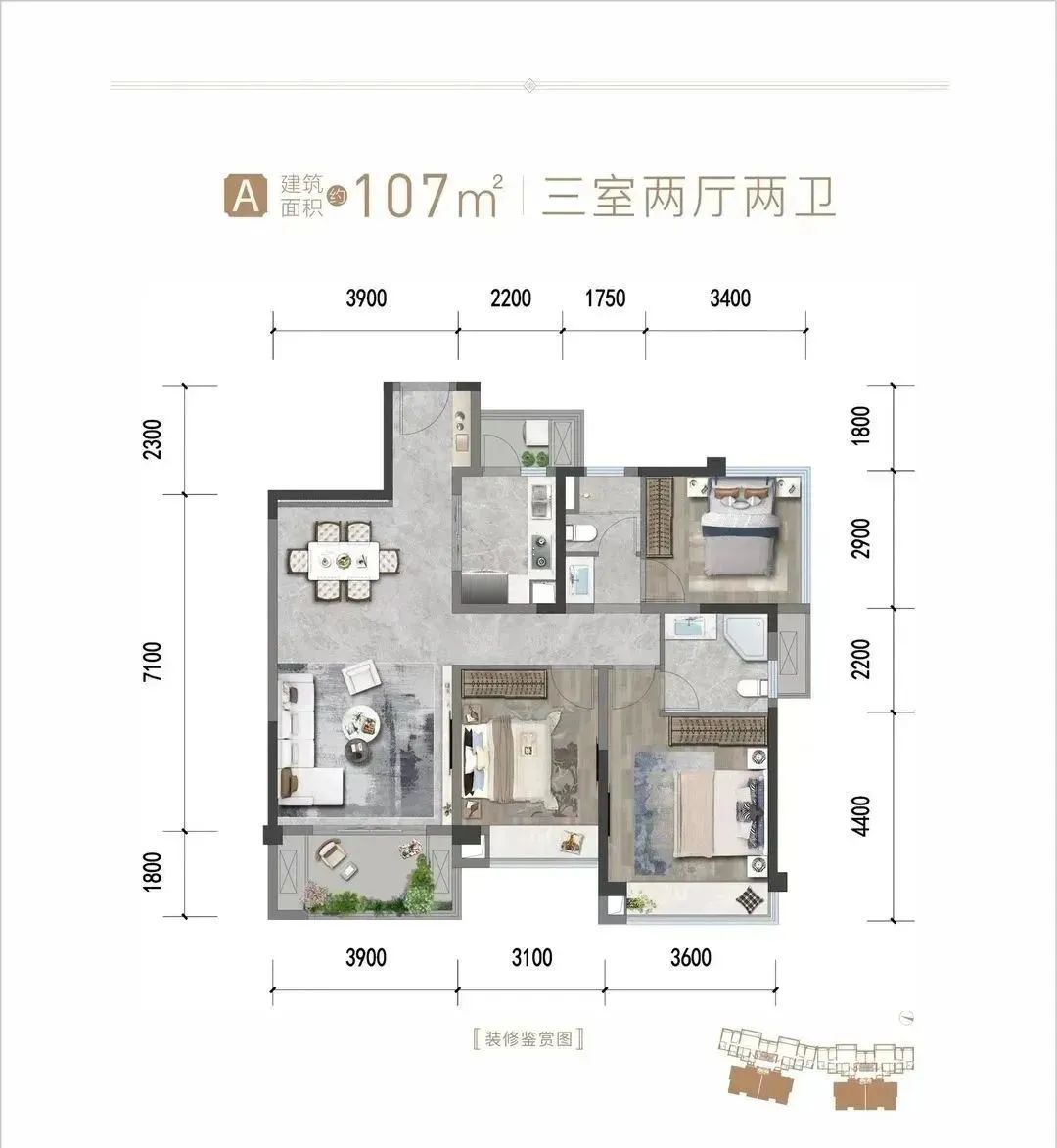 值得注意的是,约107平米户型,不仅门槛低,且实得面积约119平米,得以让购房者以更低的总价,得到更充裕的生活空间,最终呈现高品质、低总价、高占有率的特点。