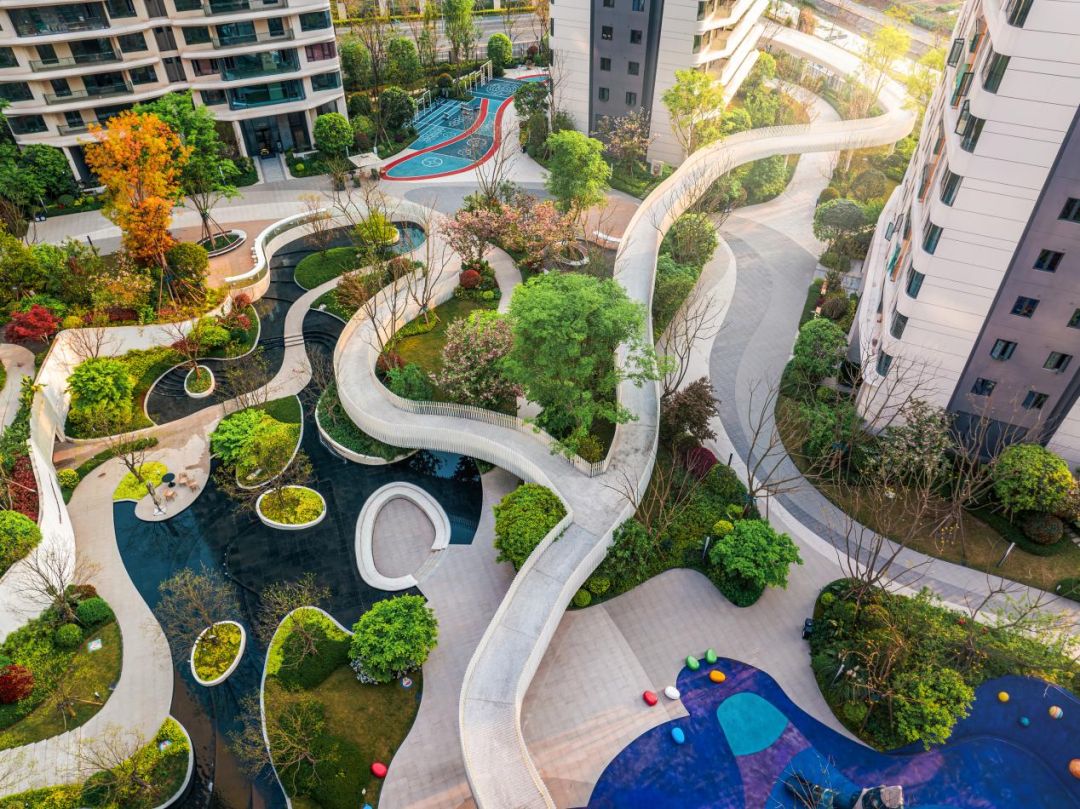 整个项目占地约750亩,是天府新区的超级大盘。这样的项目,本身就是区域的关键部分。因此,它从前期规划之初,就站位公园城市高度,融入公园理念打造。