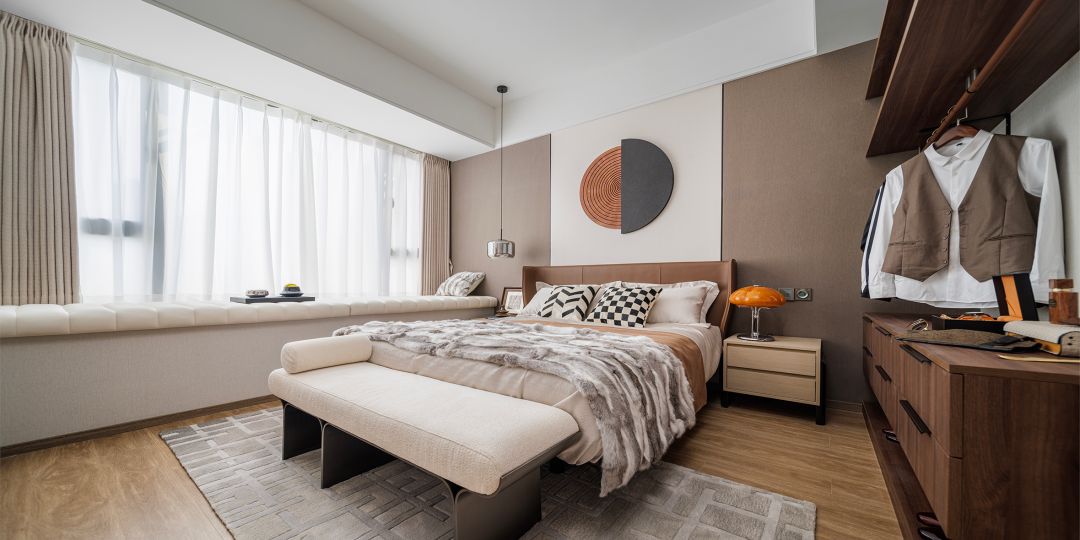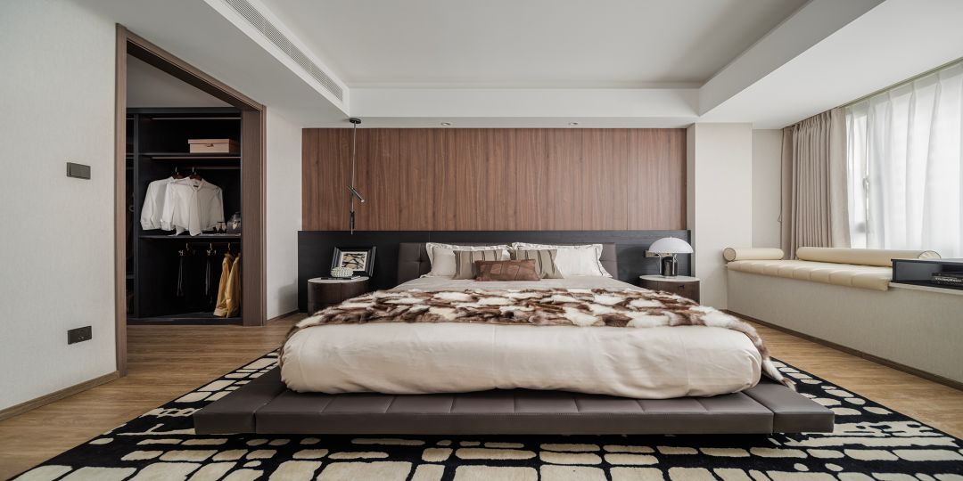 卧室体系部分,主卧就寝区约3.9*4.2m的尺度,双排步入式衣帽间+梳妆台的设计,主卫体配置双台盆空间,尺度感与功能性都拉满了。除此之外,次卧也设计有套房,并且,还有一个可改造的储藏空间——后期也能根据家庭需求,与旁边的儿童房改造为大尺度的套房。约3套房的设计,能够满足不同阶段的家庭成员居住需求。兼顾了尺度感与功能性,这一户型的表现很优秀。