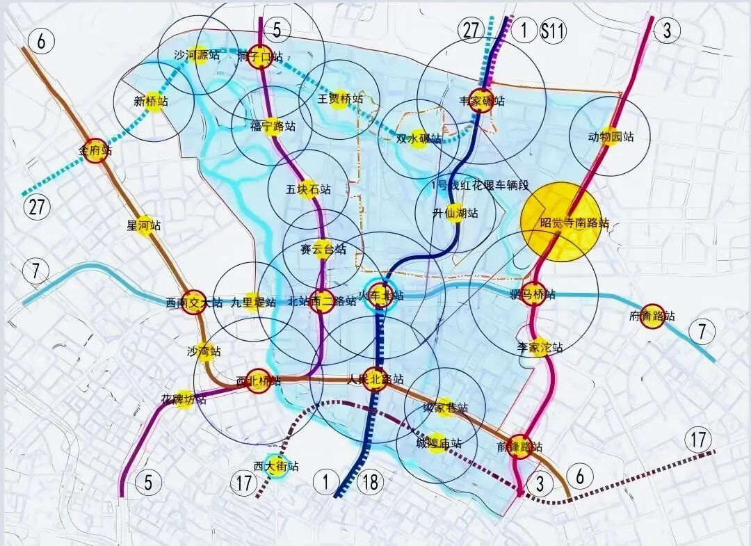 ◎ 成都蓉北商圈轨道交通示意图 图据成华发布
