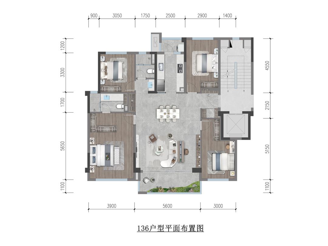 与此同时,项目在户型设计上同样极为亮眼。整个项目设计了建面约99㎡、119㎡、123㎡,以及136㎡四种户型。研发团队在户型表达中,不仅追求高得房率,更是通过家庭成员的关系、生活动线等反复推演而设计。