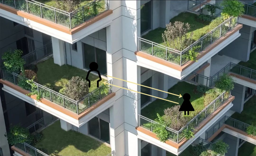 花园对于普通四代宅来讲是把双刃剑,隐私问题乃是最大痛点,具体表现为:壁挂式阳台对客厅采光的遮挡、阳台错层导致的对视及遮挡、极端天气灌雨等。