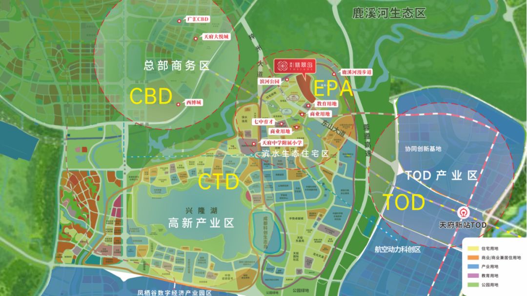 俯瞰天府CBD版图,秦皇湖、兴隆湖、鹿溪湖组成了天府CBD超5000亿的恢宏配套,在生态优先、商务优先、产业优先的区域建设之中,先期兑现的秦皇湖、兴隆湖,以商务、产业等为主,只有鹿溪湖,才是天府CBD的生态居住之核。