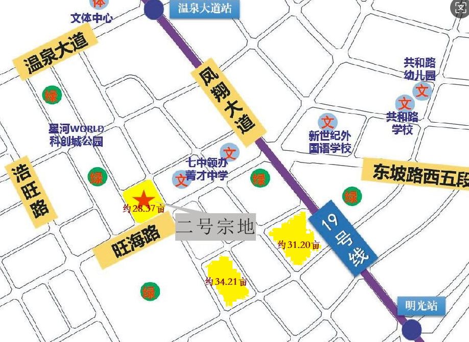 从地图可见,这宗土地与地铁线路邻近,周边有星河WORLD科创城、嘉禾兴打造的凤栖和鸣等知名项目,位于温江重点发展版图——凤栖湖岸新城。