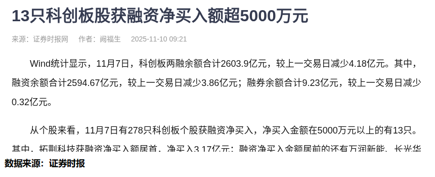 最近科创板的两融数据很有意思。11月7日的数据显示,整体两融余额虽然小幅回落,但个股层面却暗流涌动。拓荆科技单日获得3.17亿融资净买入,万润新能、长光华芯这些硬科技标的也获得大额资金注入。
