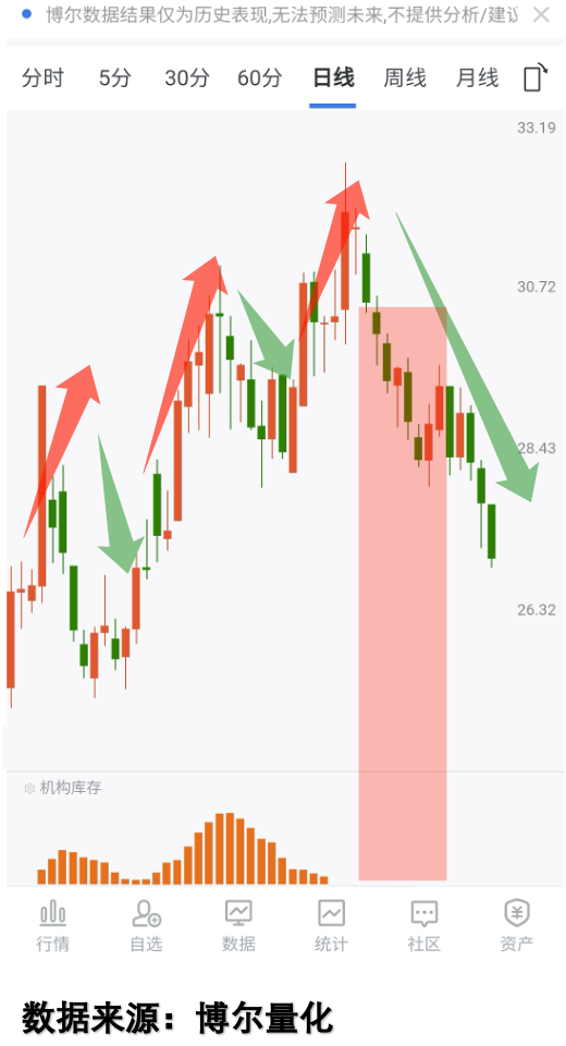 这只股票前期几次调整都涨回去了,但最后一次调整时「机构库存」消失了——这是明确的离场信号。很多人因为路径依赖死扛到底,结果损失惨重。