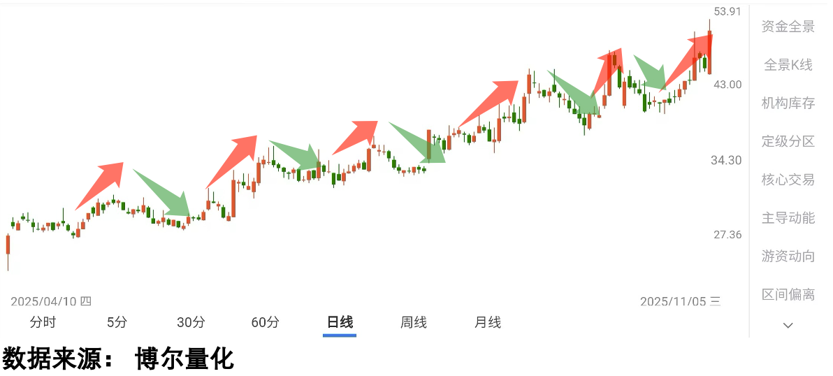 最让我兴奋的是,通过量化数据可以构建更高效的操作策略。关注从"震仓"到"抢筹"之间的机会,下图展示了五轮操作机会: