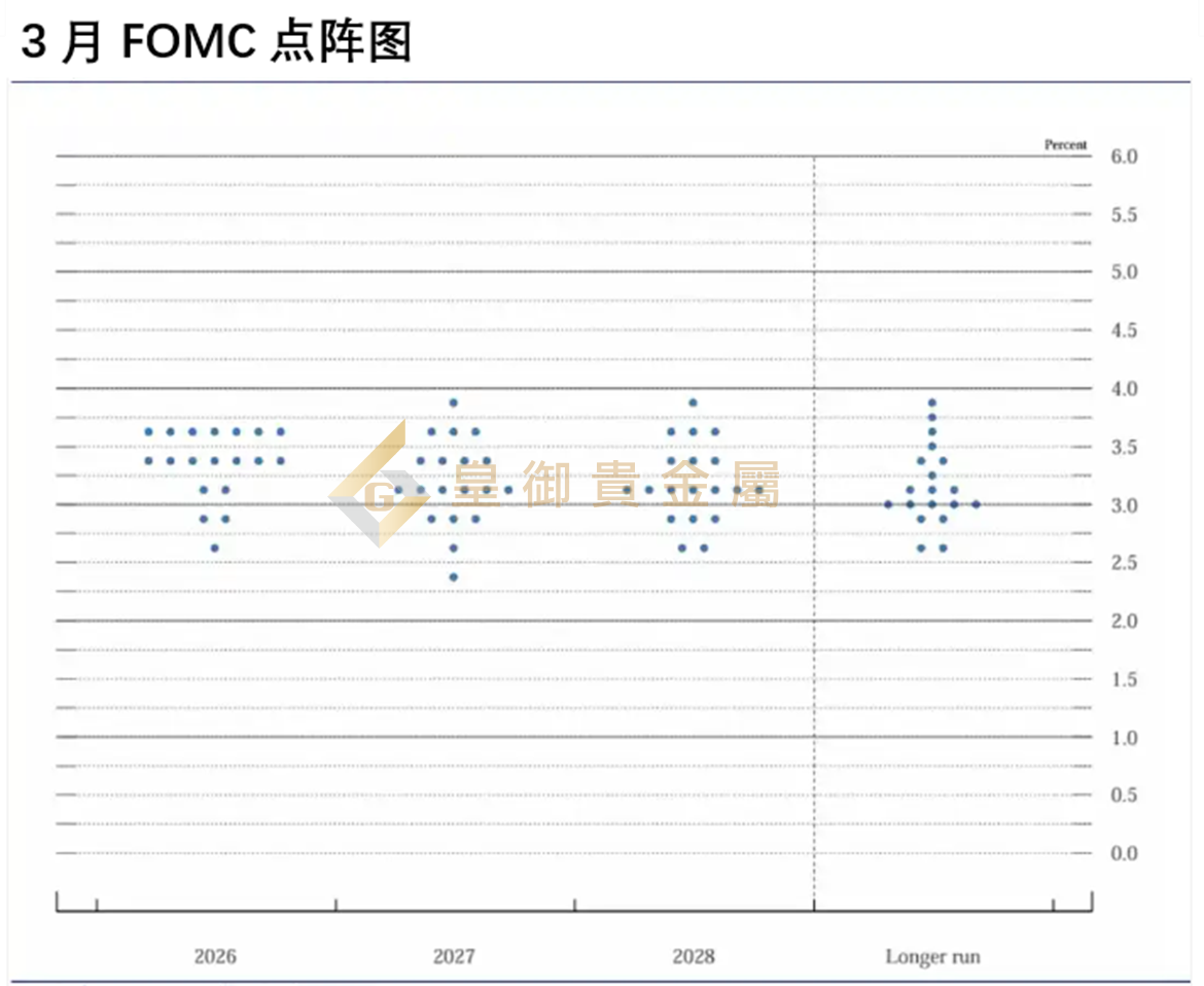 美联储3月19日议息会议释放明确鹰派信号,会议声明新增对中东局势的表述,指出伊朗冲突带来高度不确定性,其对霍尔木兹海峡的影响已扰乱全球能源市场,可能使通胀持续高于美联储2%的目标,明确“中东局势发展对经济影响仍具有不确定性”。本次会议虽维持利率在3.50%-3.75%不变,但点阵图显示2026年底联邦基金利率中值预期仍为3.4%,决策者对降息态度极为谨慎。鲍威尔明确表示,通胀未改善叠加中东局势不确定性,委员会已讨论加息可能,并不急于降息。