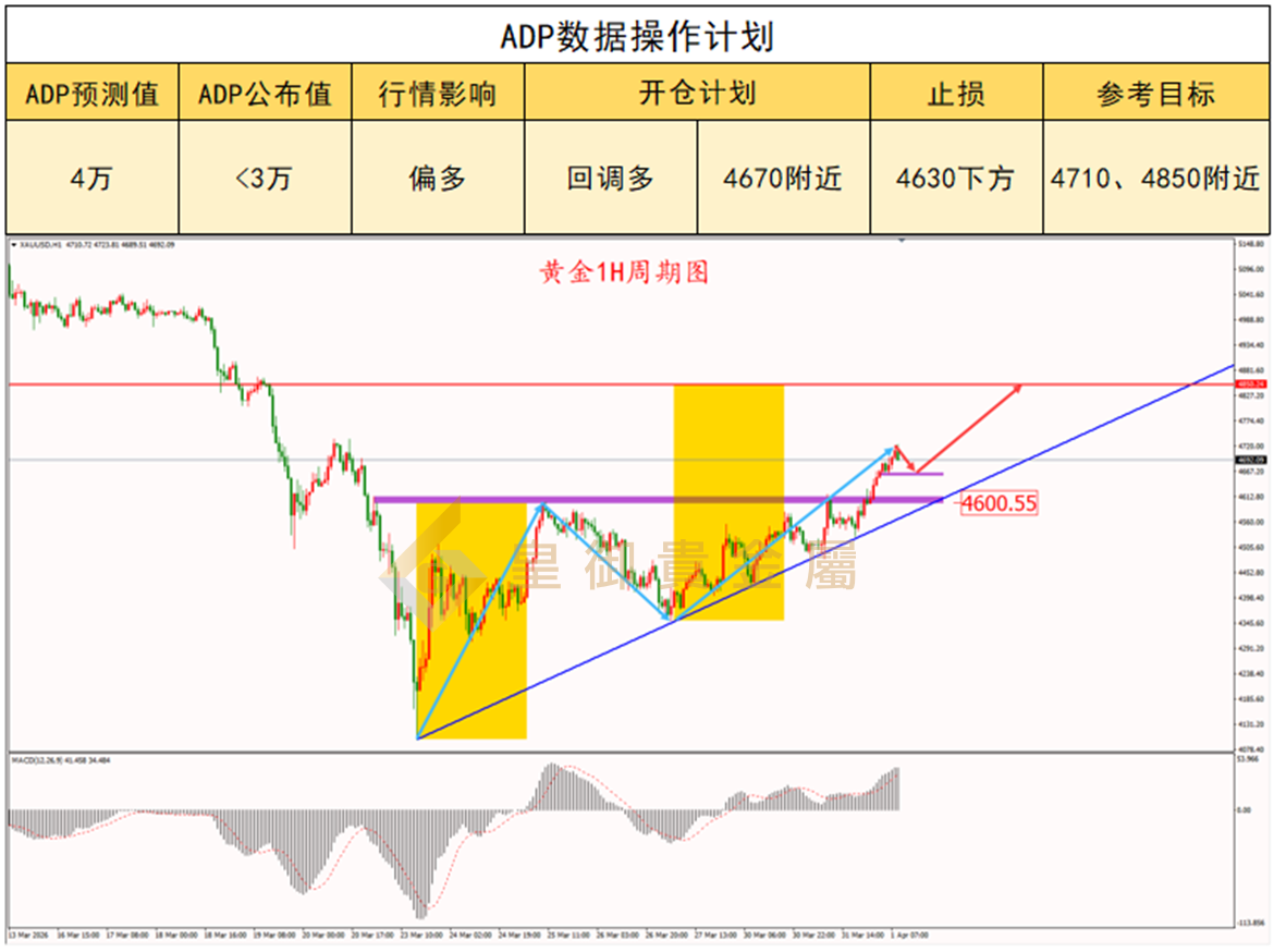 晚间即将公布的3月ADP就业数据素有非农数据“前瞻指标”之称。若数据表现疲软,往往预示周五非农数据同样偏弱,对黄金形成利好;反之则可能对金价构成利空。ADP数据有望成为推动黄金走势的关键节点,投资者需警惕数据公布引发的短期剧烈波动,密切关注晚间数据发布情况。