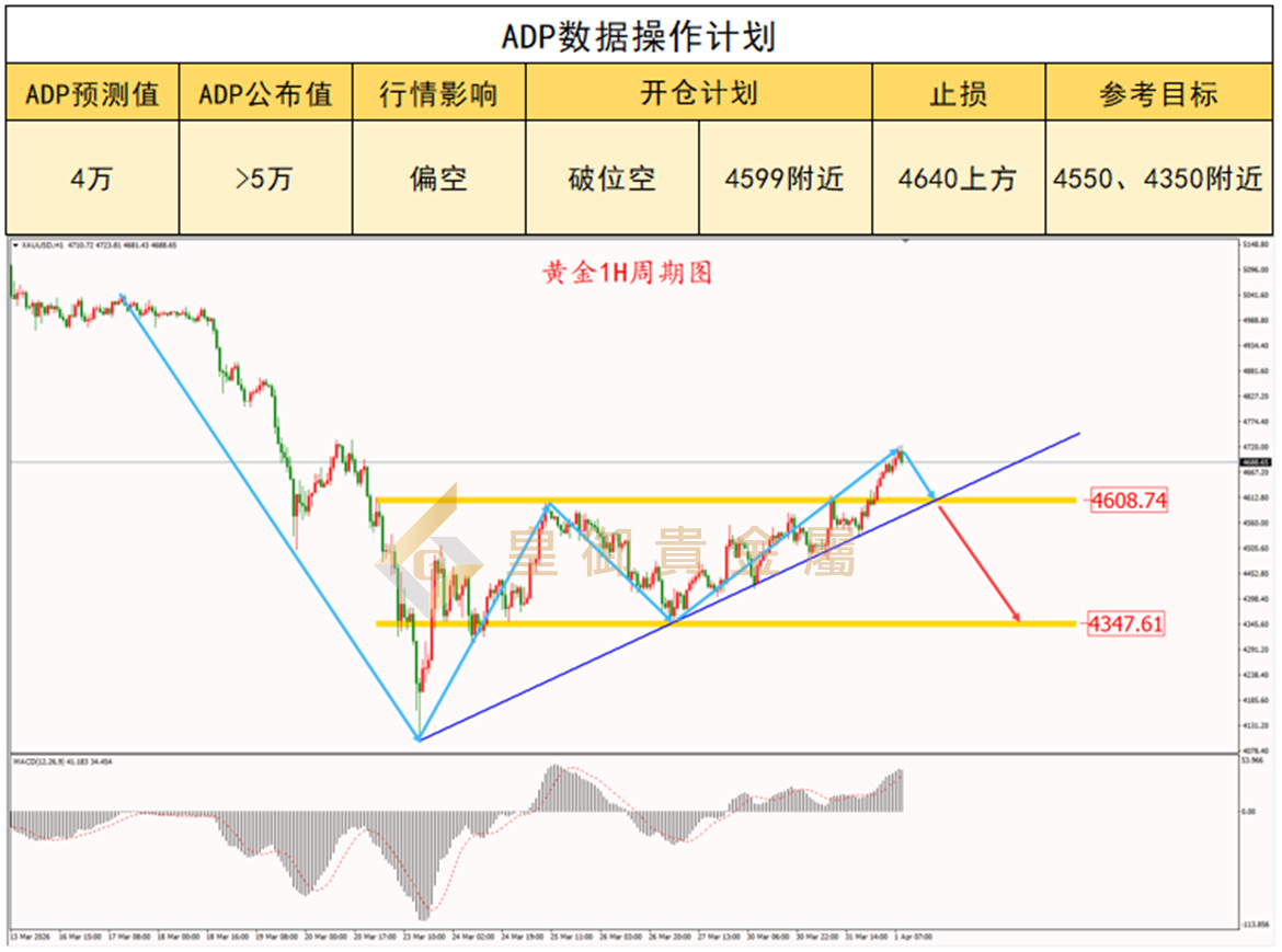 3、综合以上分析,我们可以明确看到,ADP数据公布后,金价短线波动较大,为了更好地把握投资机会,投资者应将技术分析与数据解读紧密结合,从而更精准地预测市场走势。在接下来的部分,本文将进一步从技术层面对市场进行深入剖析。