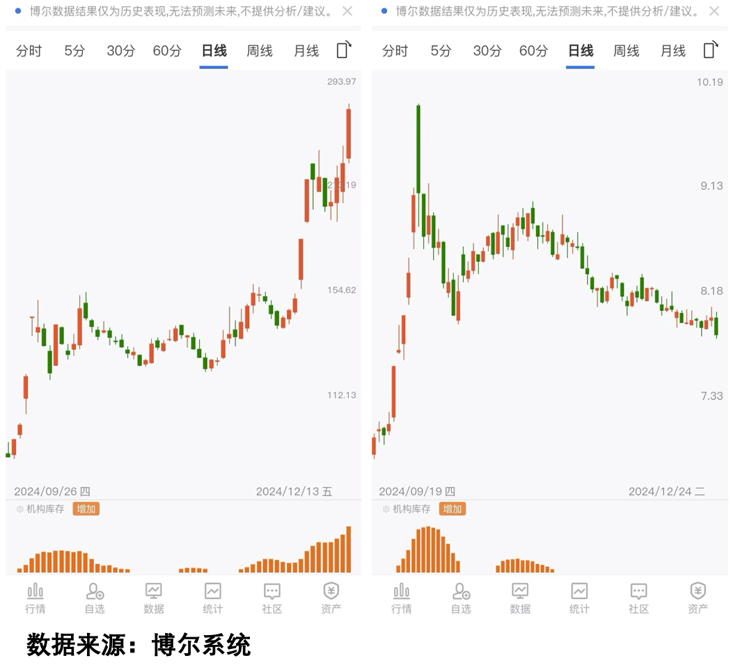 左侧的「乐鑫科技」,「机构库存」数据非常活跃,说明机构资金积极参与交易;
