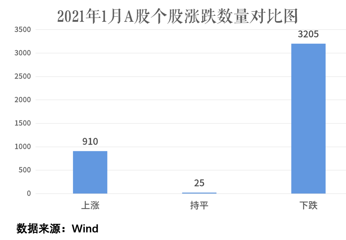一谈到牛市,大家会想起什么?躺着数钱?这是梦想不是现实,而更加尴尬的是,在牛市中,明明大盘指数涨了,但下跌的股票数量却多于上涨的?比如2021年1月,沪深300指数涨幅2.7%,创业板指数涨幅5.48%,上证指数涨幅0.29%。但A股个股下跌股票数为3222只,超过七成。