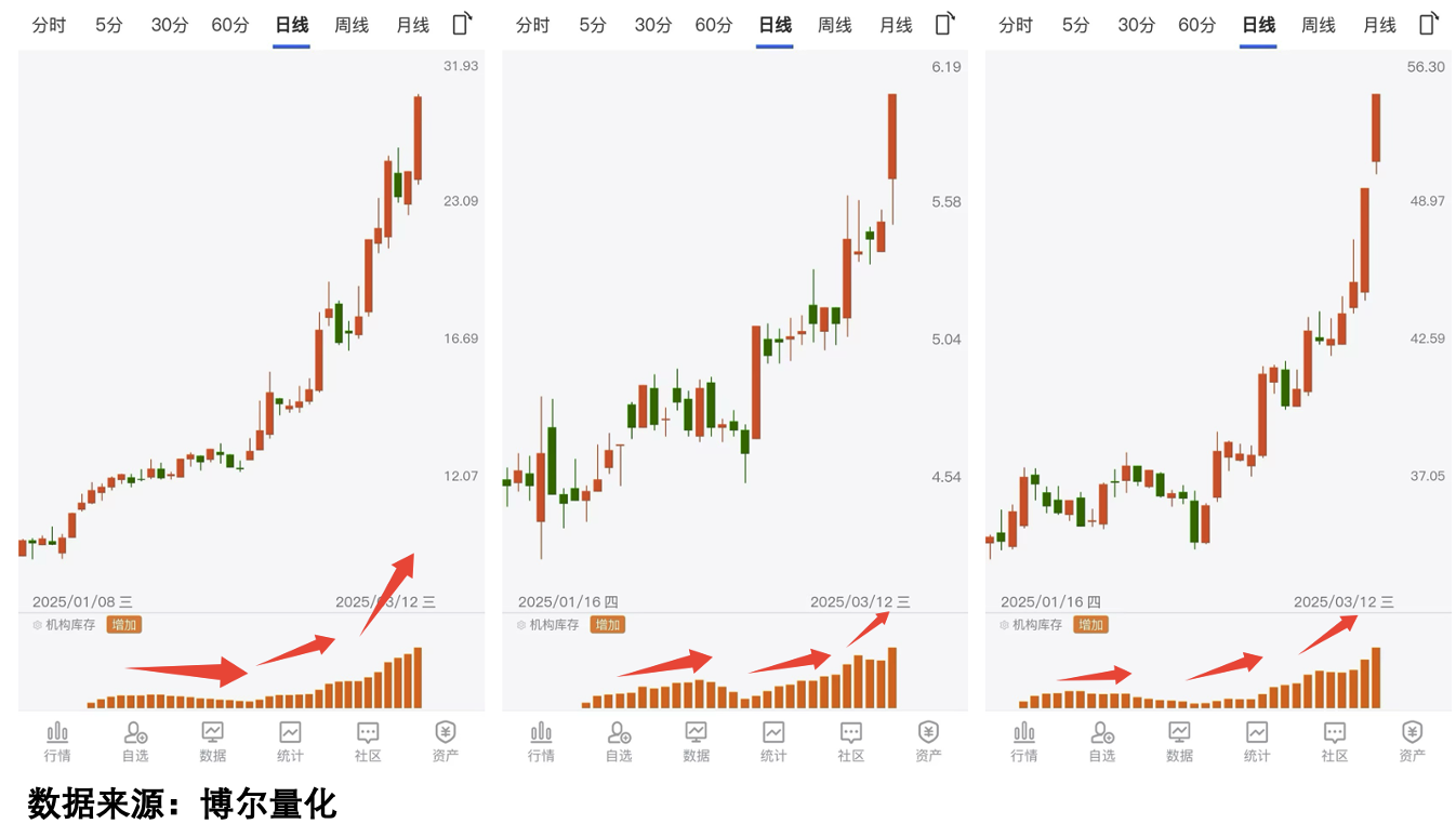 看看这几个股票,哪个不是先有机构潜伏,然后再拉起来的?从图中可以看出,和「中科海纳」虽然不是同一个该奶奶,但是机构的手法几乎是如出一辙,都是属于机构提前进场降低成本,然后肆意拉升,如果我们能看到这些先于市场动作的机构行为,有什么可担心的呢!