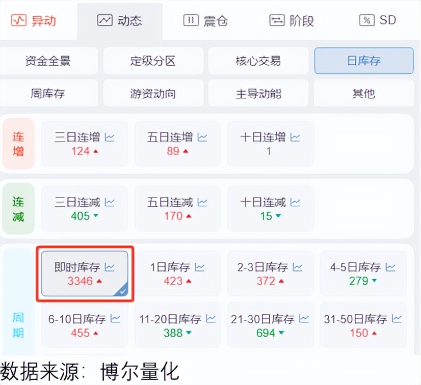 如果「机构库存」数据越活跃,那就意味着参与交易的机构资金越多,机构资金参与的时间也越长。
