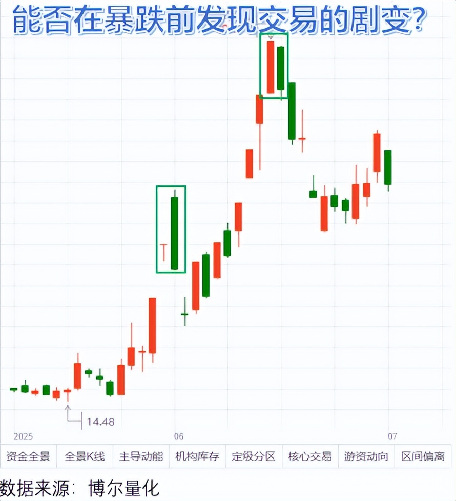 实际上,从来没有无缘无故的下跌,股票暴跌一定是原来的交易力量发生了剧变,只不过普通人看走势无法即可发现。但现在量化模型很成熟了,通过模型比对「机构交易特征」,很多转折上的交易突变都能及时捕捉到。