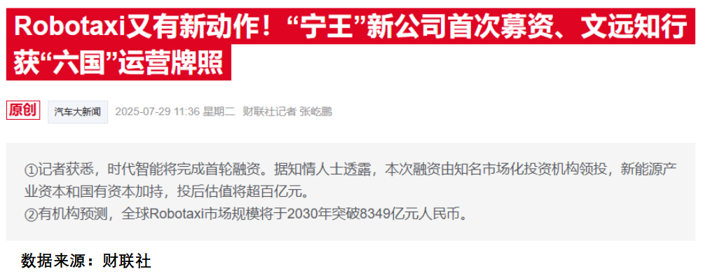 最近自动驾驶领域热闹非凡。"宁王"宁德时代旗下子公司时代智能即将完成首轮融资,估值超百亿;文远知行获得沙特阿拉伯发放的首张自动驾驶牌照;上海又发放了一批智能网联汽车示范运营牌照。行业分析师预测,全球Robotaxi市场规模将在2030年突破8349亿元rmb。
