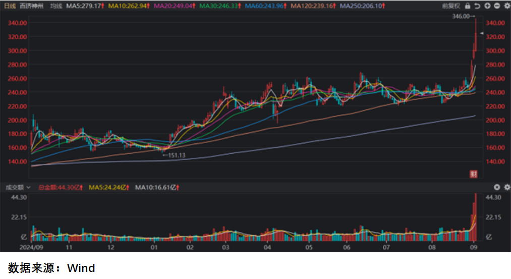 9月2日,A股创新药龙头百济神州股价强势拉升,盘中一度涨近15%,最终收盘涨幅达8.3%,报324.85元,刷新历史新高。凭借这一表现,百济神州在A股排名跃升至第12位,并成为医药行业市值排名第二的上市公司。