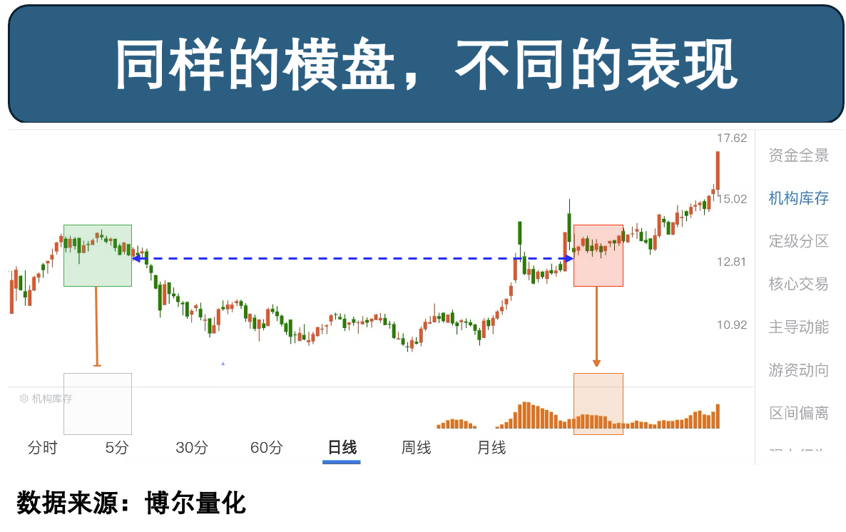 但事实却出人意料。当我用大数据工具分析后发现:虽然表面上看股价反复震荡没有突破迹象,但实际上机构资金的参与度却在悄然提升(图中橙色柱体部分)。这就是我用了十多年的系统中反映机构资金活跃程度的指标。