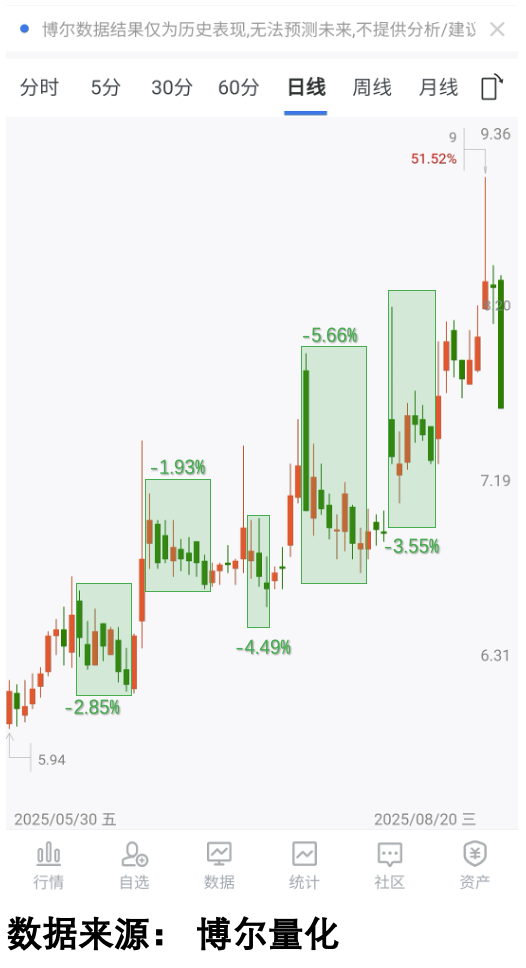 以某只三个月涨50%的牛股为例(合规要求隐去名称),表面看是稳稳的幸福曲线。但放大到日线级别就会发现:其间竟经历了五轮剧烈震荡!每次冲高回落都是对持股信念的残酷考验。