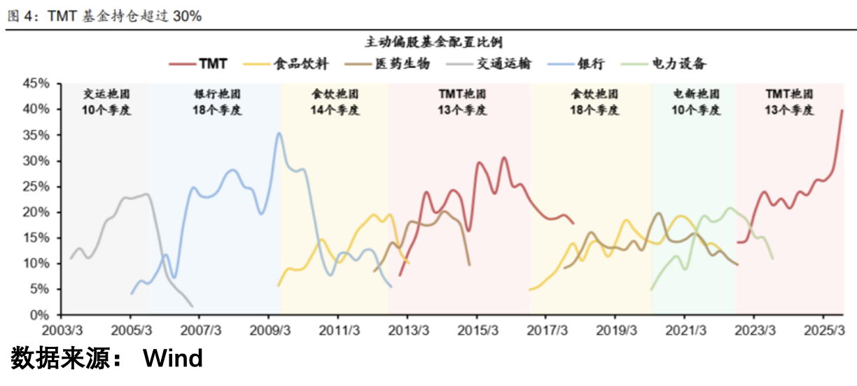 再短视一些,任何炒作都有限度,当TMT板块的拥挤度达到一个新高峰的时候,恐怕带来的远不止快乐。有人统计这轮上证指数从3000点到4000点上涨过程中,TMT板块贡献了360点,银行贡献了85点,扣除之后,目前指数就在3500附近,很多人把这个用来安慰大家为何不赚钱,但我看到的可不是这样。