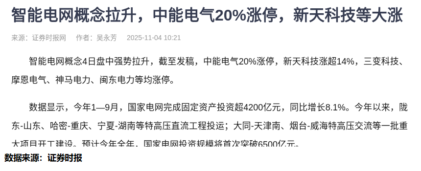 最近智能电网概念股异军突起,中能电气20cm涨停,新天科技大涨14%,三变科技、摩恩电气等纷纷涨停。看着这些股票蹭蹭往上涨,我身边不少朋友都在问:为什么总是等股票涨起来了才发现?为什么我们散户总是慢半拍?