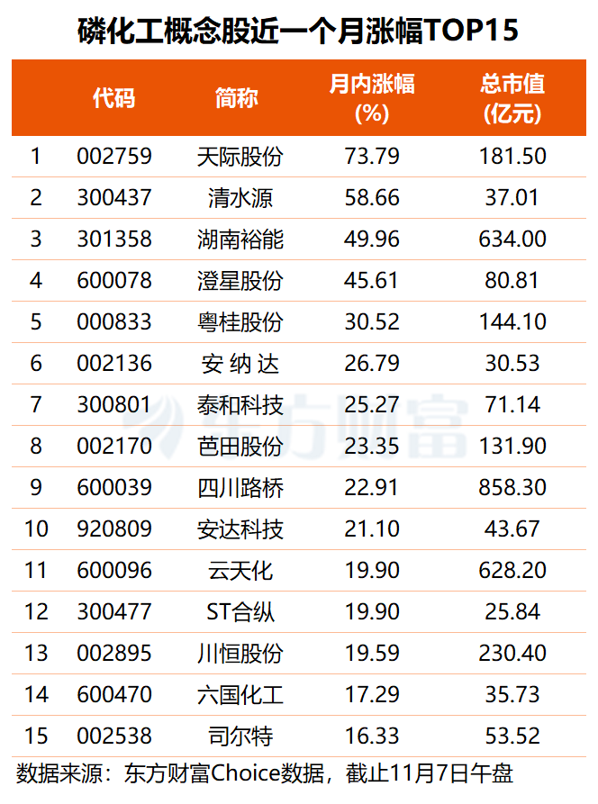 回到今天的磷化工板块,清水源20cm两连板,澄星股份、天际股份等多股涨停。百川盈孚数据显示黄磷现货价格连续上涨,但这只是表象。