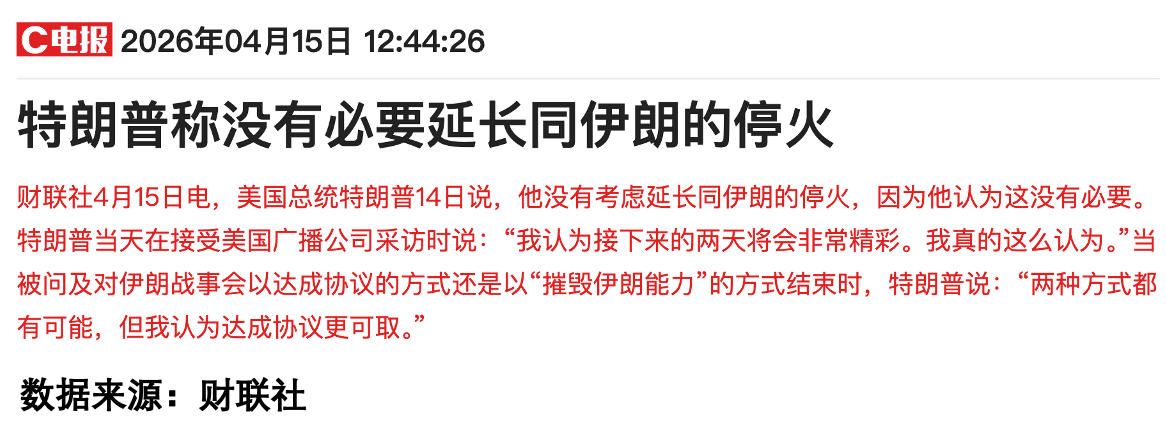 于是乎大家说市场又被吓到了,打个岔,不延长停火,就不能是彻底结束了?按照目前的测算,4月20日将是中东战火开启前最后一批到岗的原油,接下来市场将会进入真正的油荒,当然因为有储备,还不至于,马上出事情,但肯定是捉襟见肘,接下来各方面都要受到影响,不要觉得好像老美是第一产油国,有多厉害,一方面他的油不能完全替代,另一方面,老美的产能根本不够补缺,所以把欧洲老爷们急的已经不惜退团相逼,所以大家其实都硬挺,就看谁先崩了,这波我压老川……