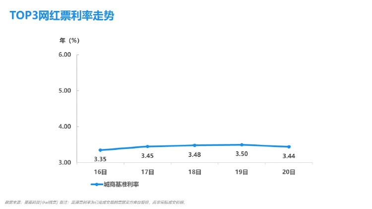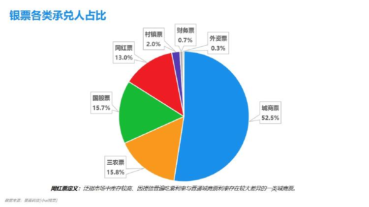 从银票各类承兑人分布看,仍以城商、三农和国股票为主,其中城商票占比52.5%,较上上周上涨3%;而三农和国股票份额基本与上上周持平,分别占比15.8%和15.7%。网红票份额较上上周有所下跌,占比13%,降幅约3%。
