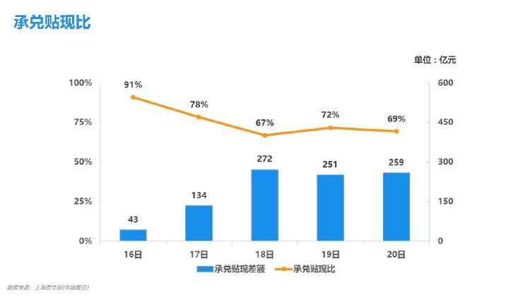 从承兑贴现比看,周一至周五整体趋势下行,由91%跌至70%左右波动,供求关系由卖方市场逐渐偏向买方市场为主导。