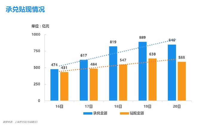 上周承兑量和贴现量较上上周均有所提升,周内呈上升走势。其中贴现量增幅较大,创近10周以来最大值。