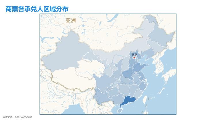 从商票地域分布看,广东省商票份额仍然较多,上周占比17%,较上上周下跌8%。其后为山东省,占比为8%,上涨2%;河南省占比7%,连续2周位居第三。