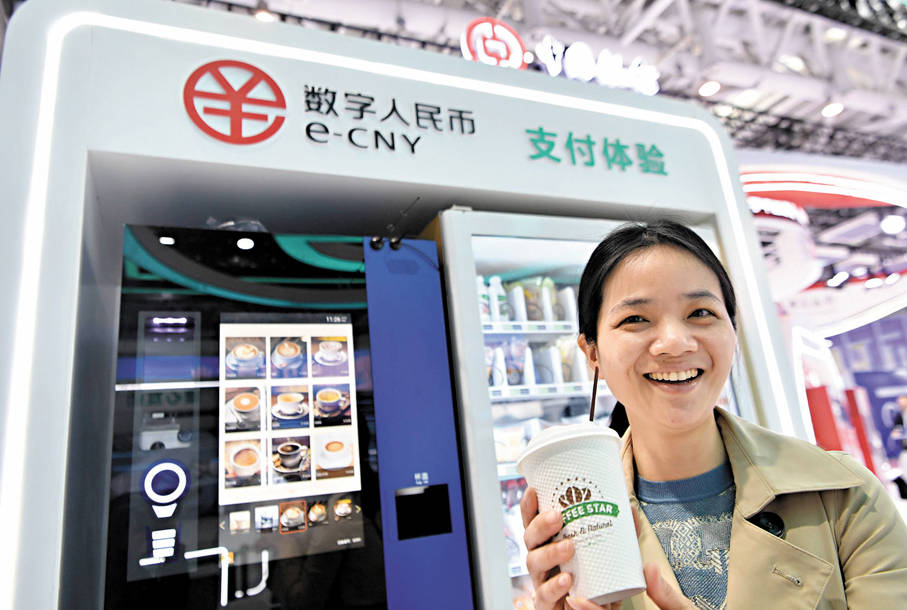 ●顾客展示用数字人民币购买的咖啡。 资料图片