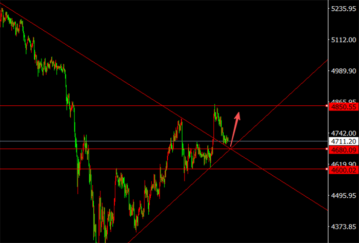 美伊达成两周停火协议后,昨日金价一度暴涨超3%,美元指数下滑,显著缓解通胀担忧,重燃美联储降息预期,为黄金提供短期利好。然而停火首日以色列对黎巴嫩发动大规模空袭,伊朗再度封锁霍尔木兹海峡,导致局势再度紧张,金价尾盘大幅回吐涨幅。技术面当前金价突破后短线虽有回落,但中期反弹格局保持完好,日内可依托4700关口附近,优先布局低多思路。