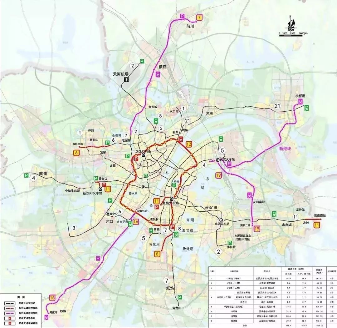 19号线自武汉火车站至高新二路,强化与武黄城际、武汉站衔接,支撑花山、光谷发展。