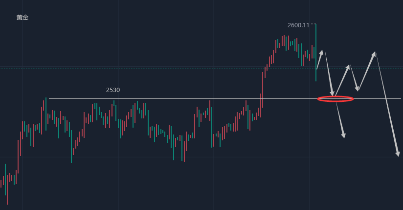 日线级别来看,黄金隔夜冲高回落,高点触及2600一线,低点触及2546一线,日线收一根长上影小阴线,日线两连阴,形态上来看黄金短线见顶信号偏强,不过下方10日均线还是有一定支撑作用,而2530则是当前多头分水岭,只有价格下破2530这波上涨才会彻底结束,在此之前黄金短线仍然具备一定上行能力,4小时图黄金冲高回落破底,K线形成吞没形态,上下都留有影线,布林带开口,均线空头排列,表明当前行情走势震荡偏空,综合来看,黄金当前已出现见顶信号,但关键支撑没破,短线仍可能有反复,因此,黄金操作上反弹高空为主,低多为辅,短线上方关注2573-2580一线阻力,下方关注2546-2530一线支撑。