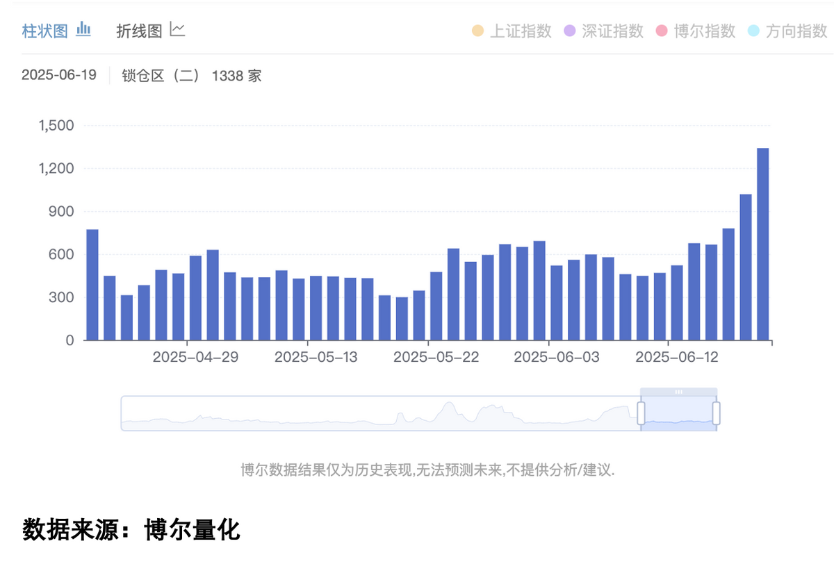 但更值得关注的是「锁仓区」个股数量的持续攀升。进入「锁仓区」并不意味着股价不会下跌——当机构选择观望时,市场自然呈现跌多涨少的格局。关键在于,「锁仓区」表明机构并未放弃这些标的,随时可能重新启动。这类个股一旦反弹,速度往往远超那些需要"重起炉灶"的品种。