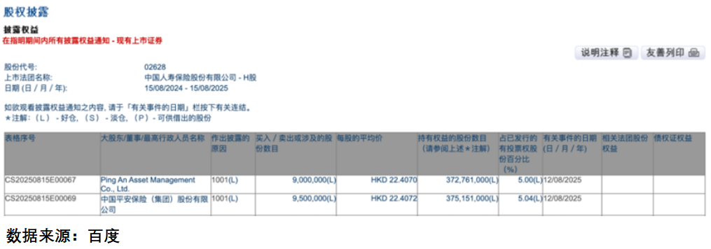 中国平安近期动作频频,先是8月12日以每股22.4072港元的价格增持中国人寿H股950万股,耗资约2.13亿港元,持股比例增至5.04%,触发举牌。紧接着又增持中国太保H股,持股比例同样超过5%。这一系列操作,让市场嗅到了不寻常的气息。