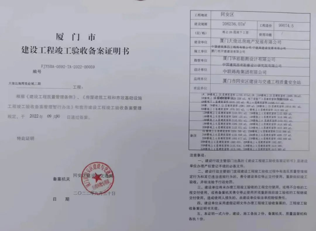 9月30日,位于厦门同安区同集路一侧的融创大同府,几经坎坷后,终于拿到了监管部门颁发的项目竣备文书。竣备是一个房地产开发项目实现交付的决定性一环,如果没有再出意外,大同府项目将于今年12月31日之前向业主完成交付。