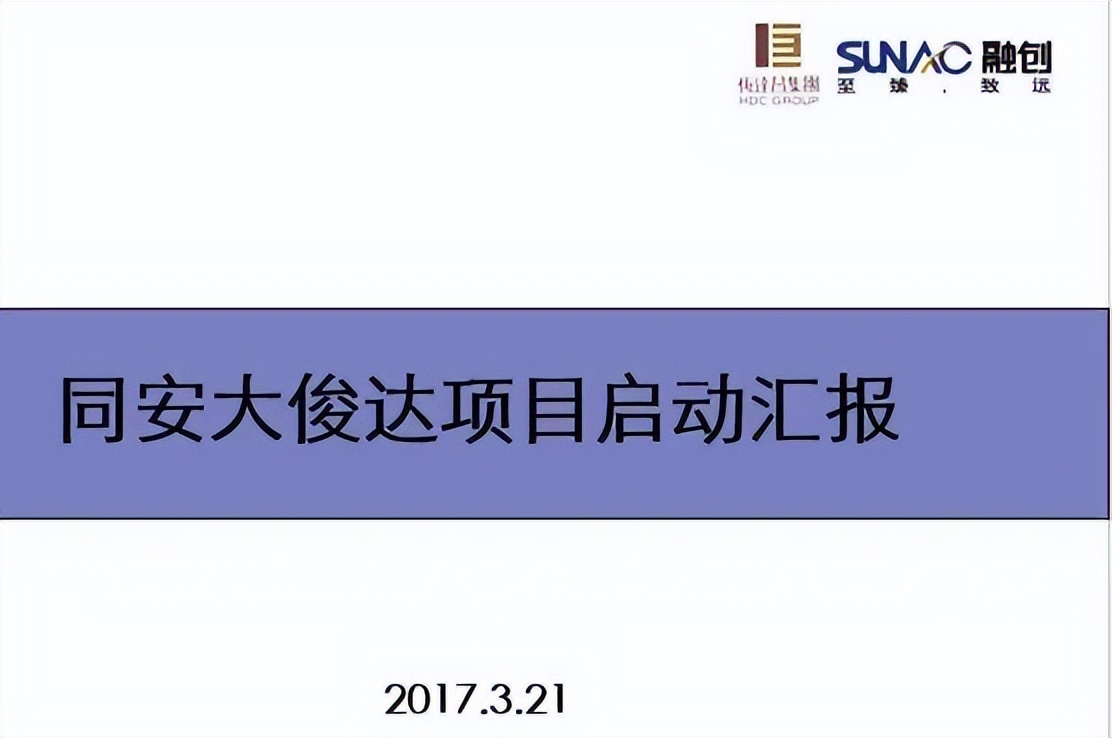 2017年3月21日,融创出具了《同安大俊达项目启动汇报》,就项目启动包括项目定位、产品研发、配置标准及限额、园区配套、方案报批、成本及财务指标、客服等工作全面汇报。