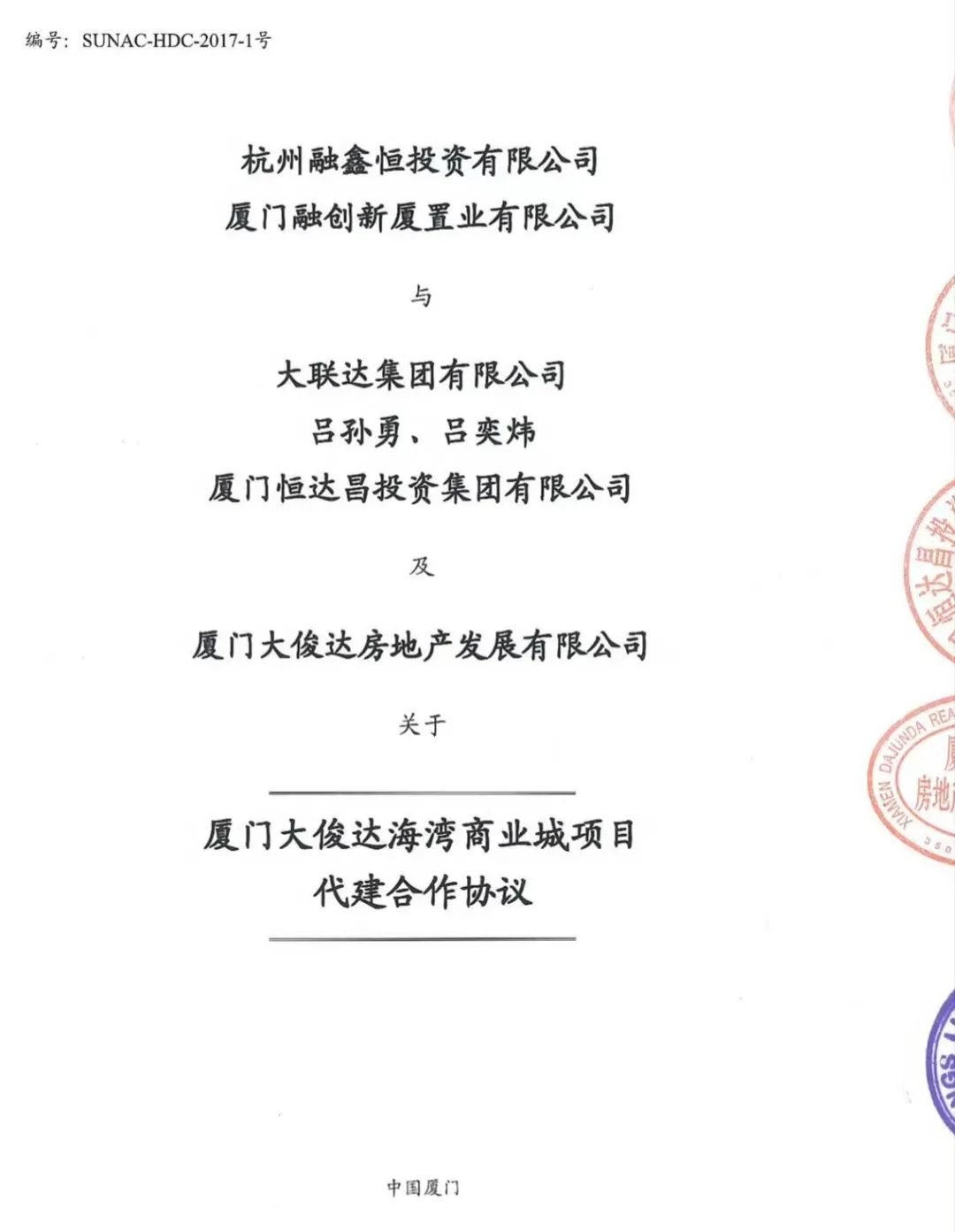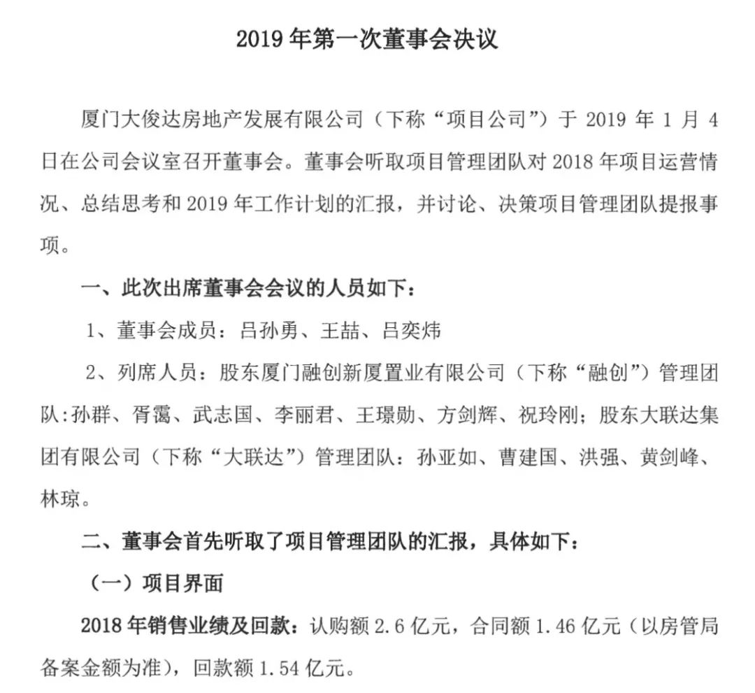 到完成交地手续为止,厦门恒达昌投资集团旗下厦门大俊达房地产发展有限公司是这个项目的唯一操盘手,当时的项目也不叫融创大同府,而叫“大俊达海湾商业城”。在厦门土生土长的吕孙勇同时是恒达昌和大俊达两家公司的法定代表人。