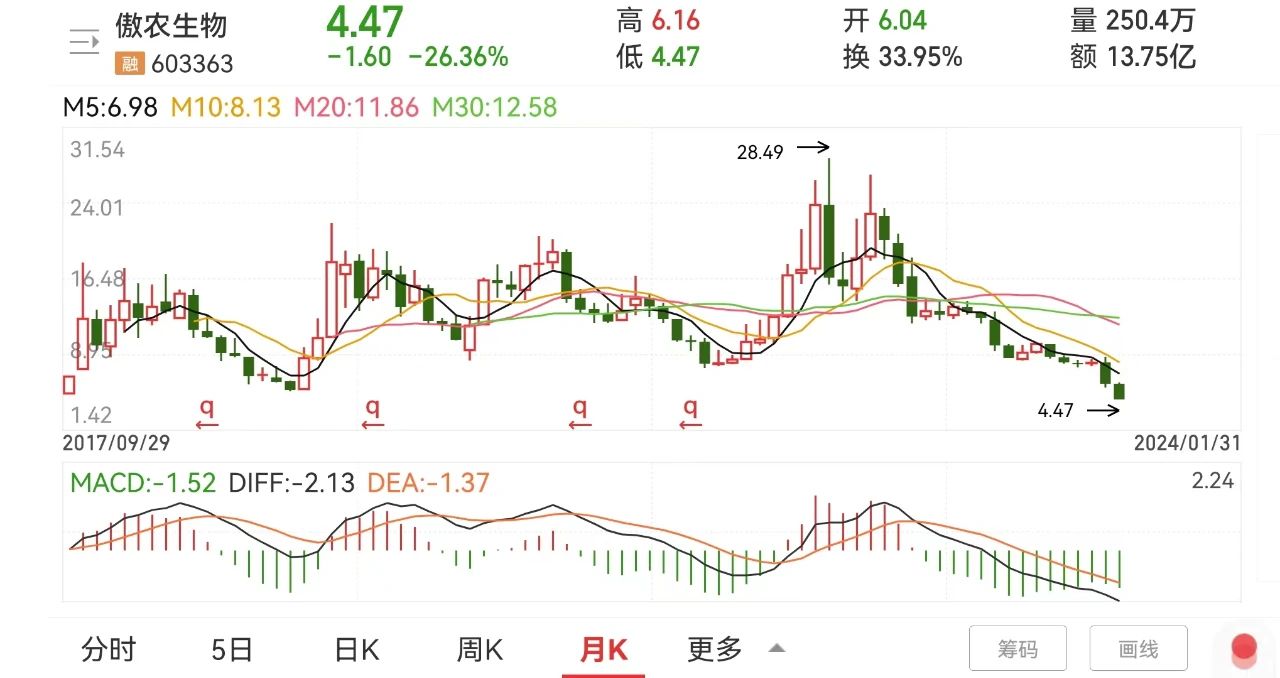 众所周知,肉价在2020年登顶后,市场供需随之逐渐出现变化,傲农生物大规模扩大产能正好撞上了肉价下行周期,灾难就这样发生了。紧接着五份债务逾期公告,1月25、26日傲农生物接连发布公告,声称董事长吴有林的股权被司法轮候冻结了。