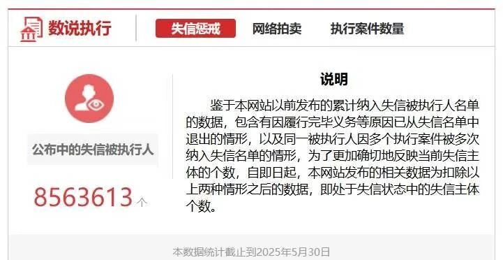 根据数说执行的统计,到今年5月份,全国失信人数856万人。最高法在年初曾发布过2024年的一组数据,共有245.7万人次纳入失信人员名单,有282.1万人次通过信用修复回归市场。失信名单人数10年来第一次下降。