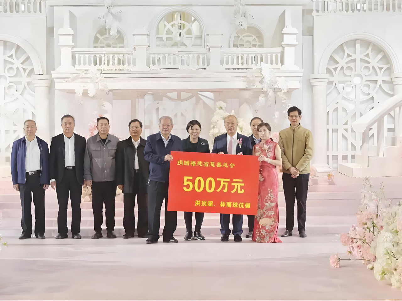 洪顶超曾经向晋江慈善总会捐赠1700万元,向泉州慈善总会捐赠1500万元,向晋江金井镇慈善协会捐赠1200万元。他还连续十多年给村里60岁以上的老人发放1000元的福利包。