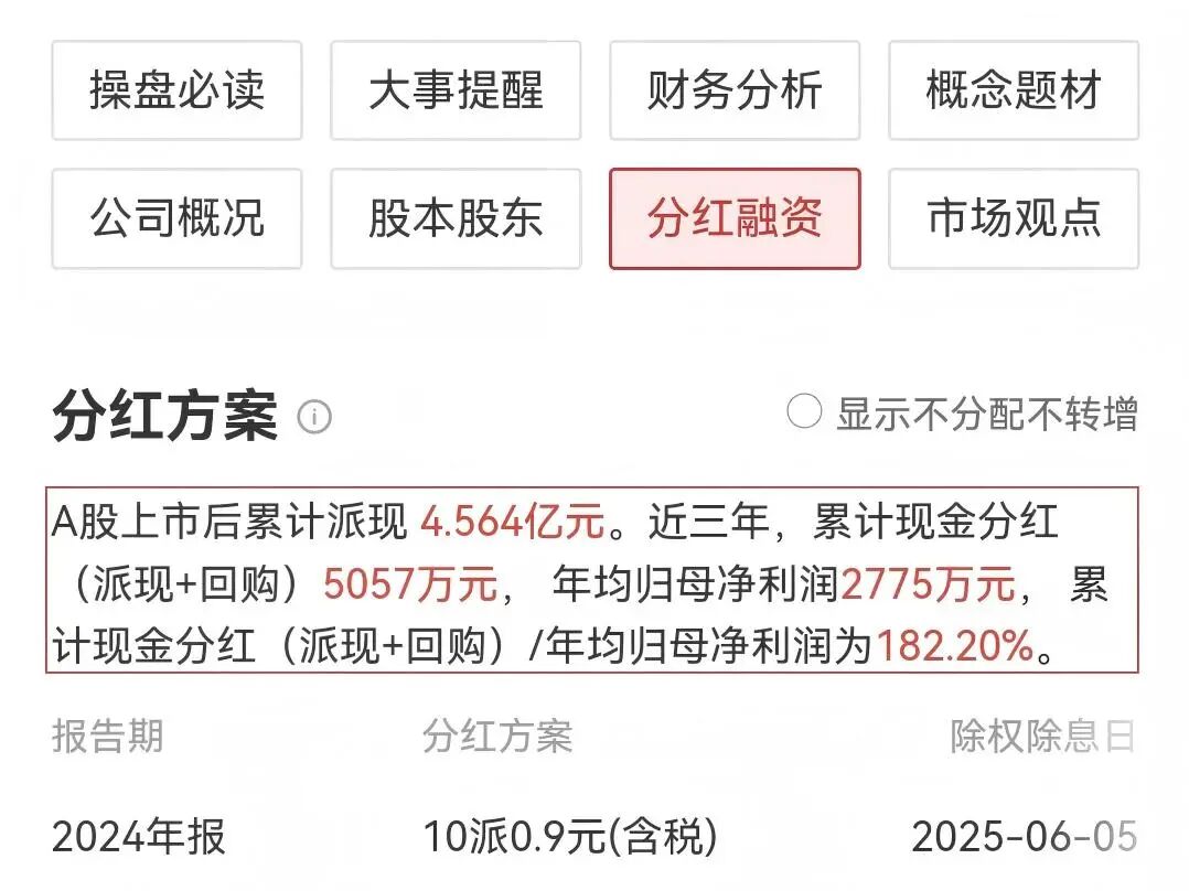 安记食品上市十年,累计现金分红4.564亿元,但公司年均净利润只有2775万元,现金分红是公司净利润的1.82倍。