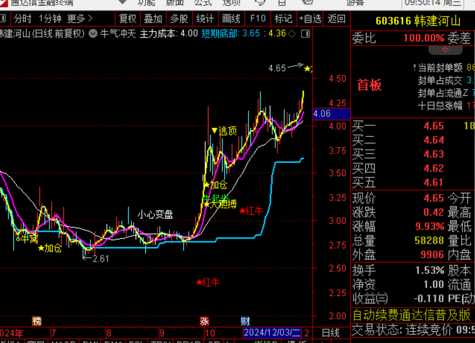 仔细观察,主力筹码指标的信号都是比股价提前几天出现的,这样就可以提前埋伏,关注,建仓,等待主力筹码指标信号出现立刻买进。